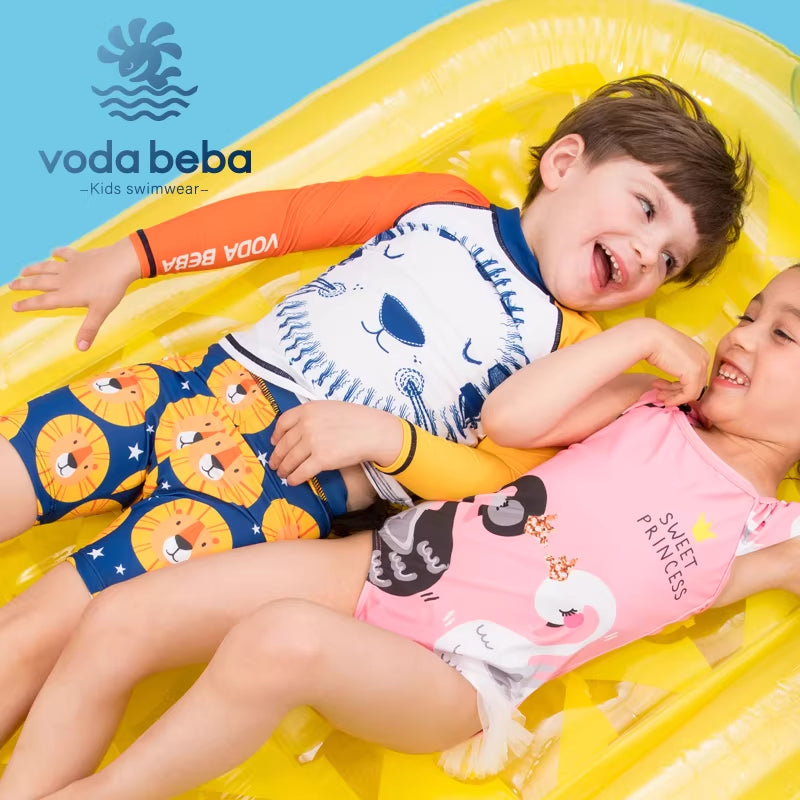 Boys' split-body swimsuit with lion pattern