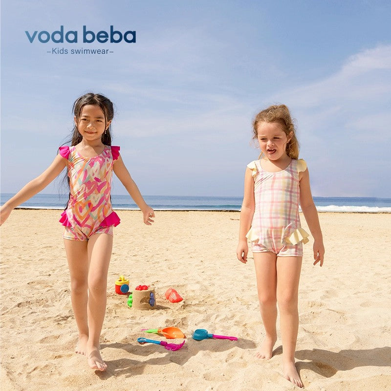 Vodabeba Swimsuit Kids Baby Girls Hot Spring Swimwear Boxer Safety Anti-Glare Big Kids Summer Quick Dry